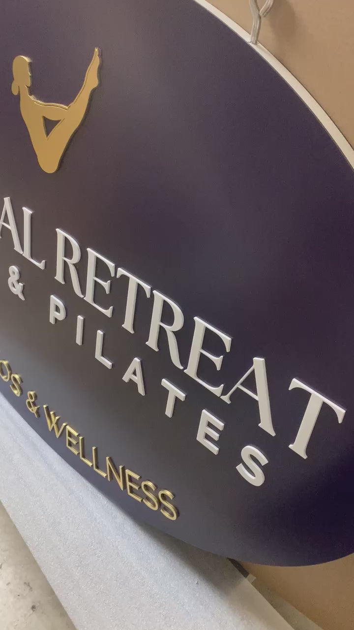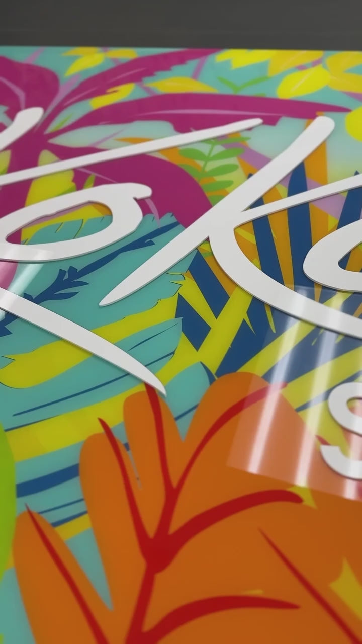 This two-layer sign style uses a rigid (ACM or PVC) printed background panel with overlaid elements. Background can be digitally printed or solid color.