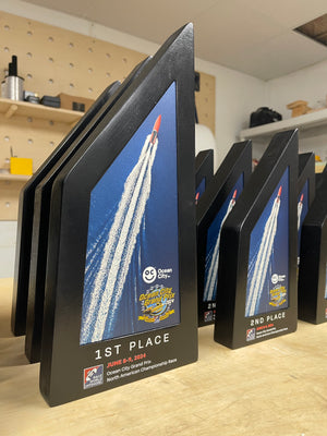 We can create large or small awards out of a variety of materials including PVC, acrylic, wood, and aluminum composites.