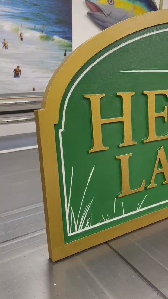 This custom multi-layer routed sign features hand-painted and printed elements, blending classic wood aesthetics with modern techniques. The dimensional design offers depth and durability, combining timeless craftsmanship with long-lasting performance for any setting.