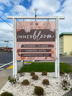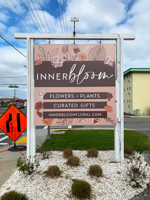 Loading image: an angled photo of the Innerbloom sign