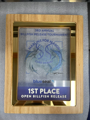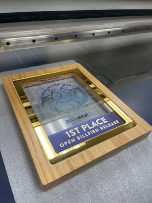 Printed Clear Acrylic with Gold Acrylic and Wood Framing