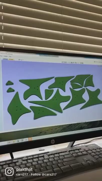 Loading image: a photo of the stack of wooden shapes that will make up The Chair