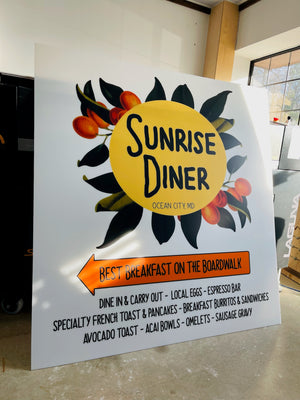 We can create interior or exterior signs out of a variety of materials including PVC, acrylic, wood, and aluminum composites.
