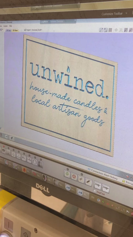 Loading image: an angled closeup of the finished Unwined sign showing the detail in the lettering
